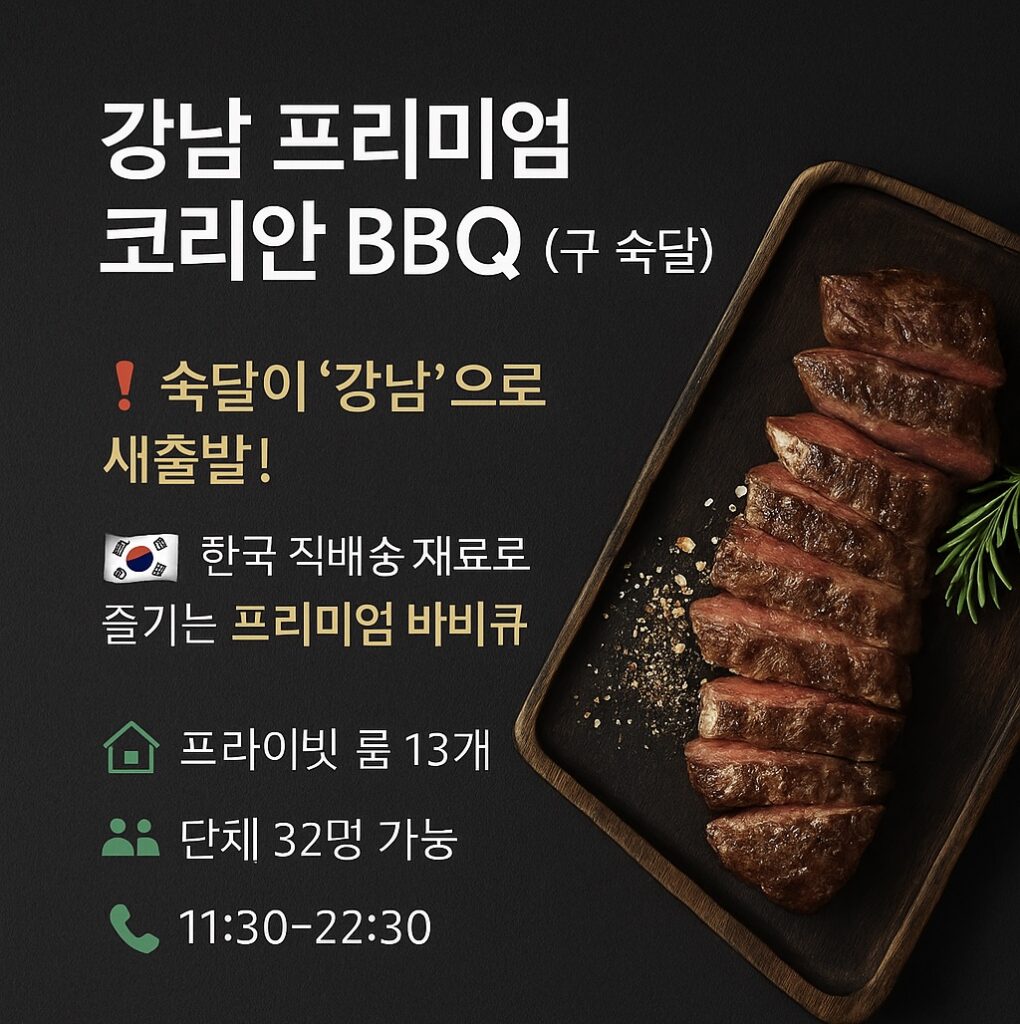 더 나은 맛과 경험을 위해 ‘숙달’이 강남 프리미엄 코리안 BBQ로 새롭게 출발했습니다.