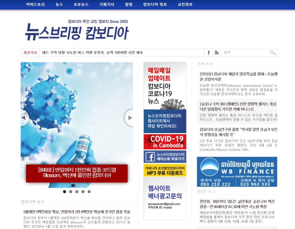 뉴스브리핑캄보디아는 캄보디아에 거주하는 한국인들을 대상으로 한국의 주요뉴스와 캄보디아뉴스 및 정보를 제공하는 주간 정보지 입니다.