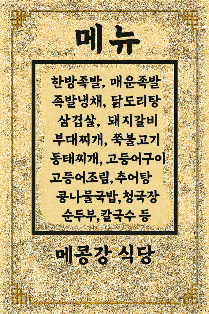 안녕하세요 캄보디아에서 10년 거주 중입니다 처음에 식사 약속 잡을때 캄보디아에서 오랫동안 거주하신 분들이 메콩강 한식당에서 잡으셨는데 살면서 이유를 알게 되었습니다. 맛은 기본이고, 친절하고, 식재료에 민감한 제가 탈나지 않고 정성껏 요리된 한식 요리를 맛볼 수 있는 곳입니다. 외국 생활하 […]